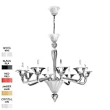 Zaneen D8-1321 Puskin 6 Light Chandelier in Chrome D8-13Venetian glass-working art combines Lombard mastery and technical skill to create the Puskin chandelier which, at the same time, both contemporary in look and technically advanced.Use 6 x 60W Halogen G9 Hand Crafted Venetian Glass Easy Assembly and installationBulb Type: Halogen Collection: Puskin Country of Origin: Italy Depth: 31-1 2 Diffuser Finish: White Glass, Black Glass, Red Glass, Amber Glass, Clear and Frost Crystal Finish: Chrome Height: 31-1 2 Material: Glass Number of Lights: 6 Room Application: Dining Room Foyer Safety Approval: cCSAus Style: Traditional Type: Non Crystal Chandeliers Wattage: 60