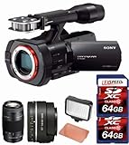 Sony NEX-VG900 Full-Frame Camcorder (Black) + SAL50F18 Sony DT 50mm f/1.8 Lens + SAL75300 Sony 75-300mm f/4.5-5.6 Lens + LED + Two 64GB Cards