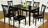 Finished in deep expresso, this contemporary dining set seats six comfortably in a rectangular table. The padded chair seats are covered in leatherette and the seat backs have a contemporary criss-cross design. Dimensions: