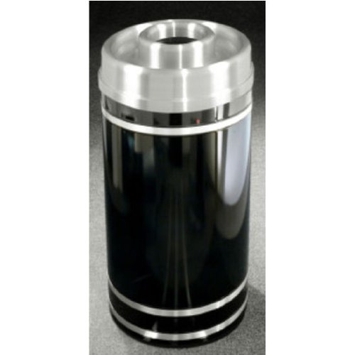 Glaro Monte Carlo Series Donut Top Ash/Trash Receptacle in Burgundy w/ Aluminum Bands, 15 inch Dia x 33 inch H, 16 Gal, Shown in Black w/ Aluminum Bands with Many Other Colors Available