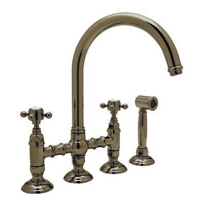 Features Rohl A1461XWSTCB-2 Country Bridge Kitchen Faucet with Spray Tuscan Brass Cross?